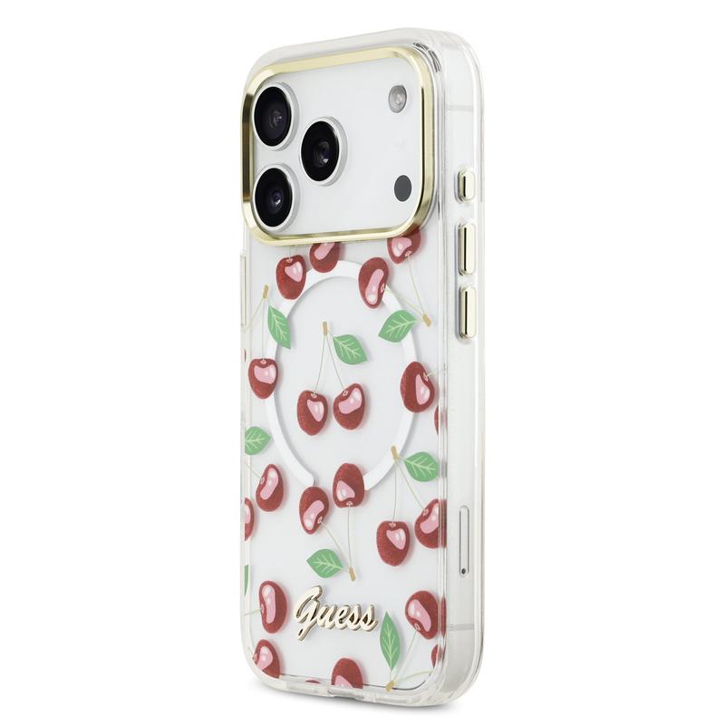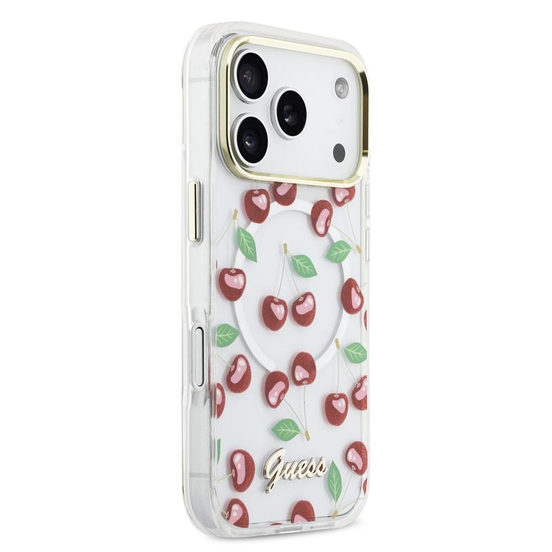 iPhone 17 Pro Guess IML Glitter Cherry Hybrid Cover - MagSafe-kompatibelt - Gennemsigtigt