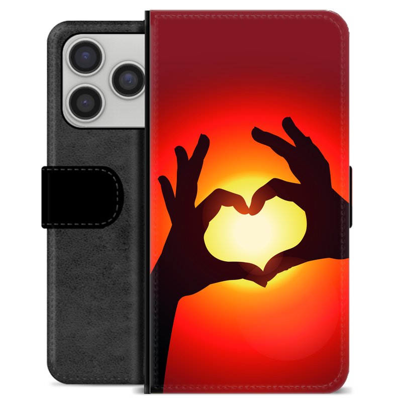 iPhone 17 Pro Premium Flip Cover med Pung - Hjertesilhuet