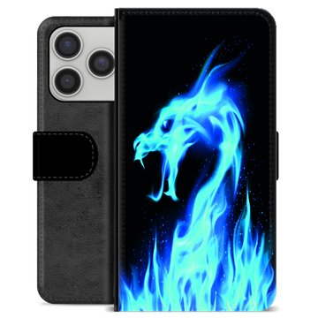 iPhone 17 Pro Premium Flip Cover med Pung - Blå Ild Drage