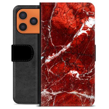 iPhone 17 Pro Max Premium Flip Cover med Pung - Rød Marmor