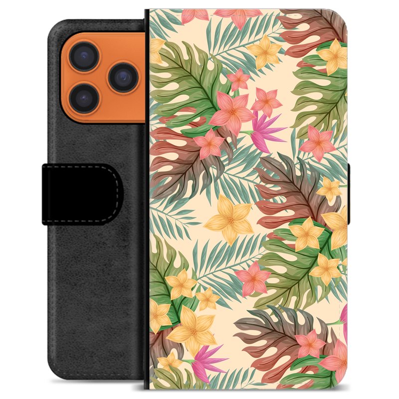 iPhone 17 Pro Max Premium Flip Cover med Pung - Lyserøde Blomster