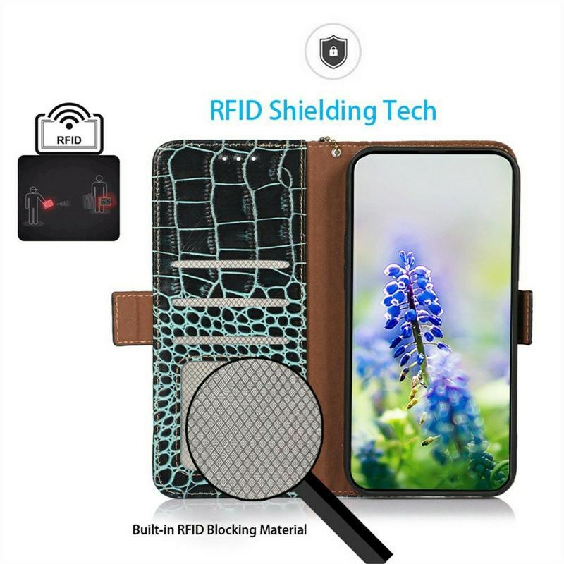 Et let og blødt pungcover med en unik krokodilletekstur, det perfekte valg til at beskytte din iPhone 17 Pro og holde den ubeskadiget. Den er lavet af ægte læder af høj kvalitet og indvendigt TPU-materiale, designet med tre kortpladser, en ID-slot og en lomme til kontanter, ideel til at bære dine væsentlige ting ved siden af din iPhone 17 Pro. Desuden blokerer RFID-teknologi effektivt eksterne signaler og holder dine data sikret.