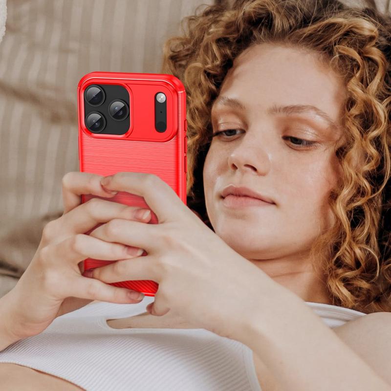 iPhone 17 Pro Max Børstet TPU Cover - Karbonfiber - rød