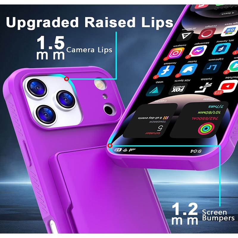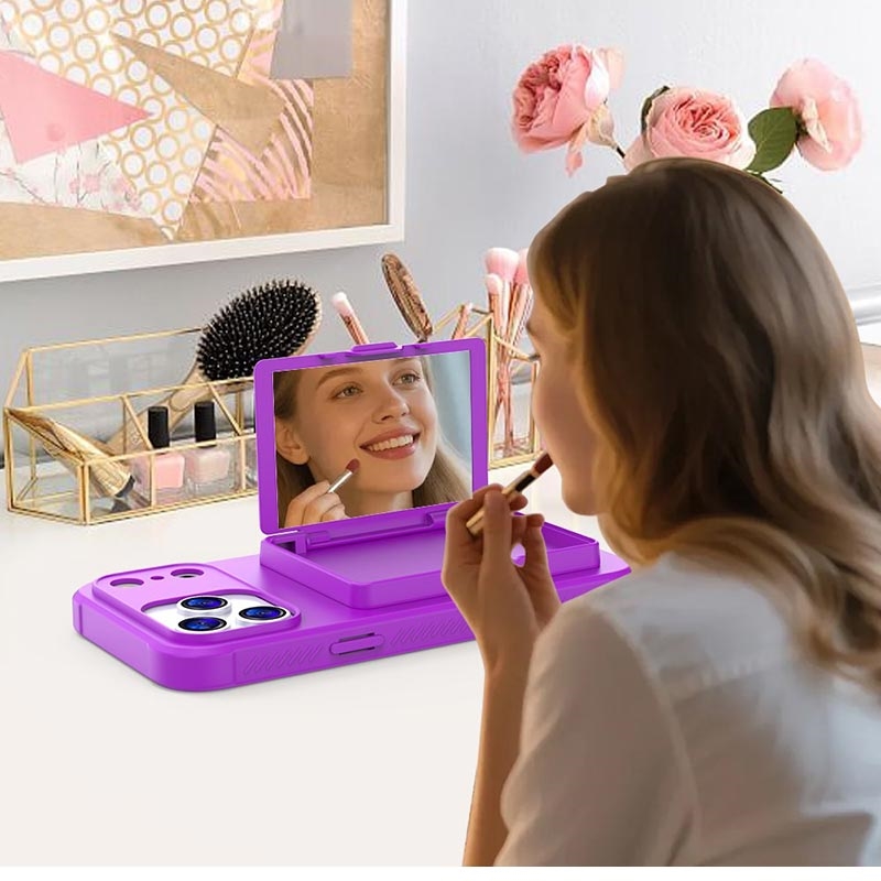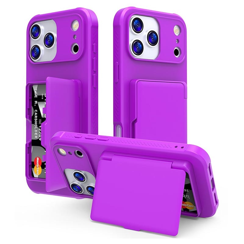 iPhone 17 Pro Max Hybrid Cover med Spejl og Kortholder - Lilla