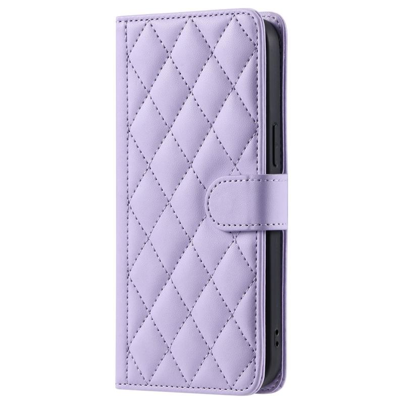 Beskyt din iPhone 17 Pro Max med denne luksuriøse, quiltede pung. Den er fremstillet af TPU-materiale belagt med PU-læder, hvilket gør den ridsefast og fingeraftryksbestandig, så din telefon ser stilfuld og elegant ud. Syningen danner et rombeformet gittermønster, der giver coveret et moderne og smukt touch. Den hævede kant på kameraet og skærmen giver effektiv beskyttelse mod ridser, mens de præcise udskæringer giver fuld adgang til alle knapper, porte og andre funktioner. Pungdesignet giver mulighed for nem opbevaring af vigtige kort og kontanter. Med ekstra beskyttelse mod ridser, stød, fald og daglige skader leveres dette cover også med en skulderrem og en håndledsrem for ekstra bekvemmelighed.