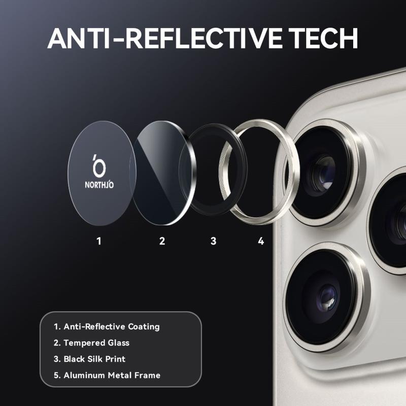 Opgrader din iPhone 17 Pro, iPhone 17 Pro Max med Northjo-kameralinsebeskytteren. Med en aluminiumsring med CD-vener giver den din iPhone 17 Pro, iPhone 17 Pro Max et elegant, moderne præg, samtidig med at den giver robust beskyttelse. Det 9H hærdede glas beskytter mod ridser, slag og støv og sikrer, at kameralinsen forbliver krystalklar. Med nem, værktøjsfri installation kan du forbedre din iPhone 17 Pro, iPhone 17 Pro Max's holdbarhed og æstetik på få sekunder.
