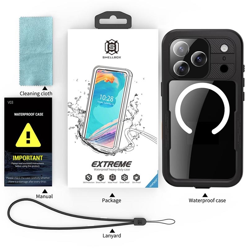 Udstyr din iPhone 17 Pro Max med Shellbox M Series Waterproof Case, og gå trygt i gang med dit næste eventyr, velvidende at din enhed er beskyttet og klar til action.