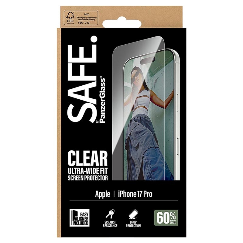 PanzerGlass Safe Ultra-Wide Fit Skærmbeskyttelse Hærdet Glas til iPhone 17 Pro - 9H, EasyAligner