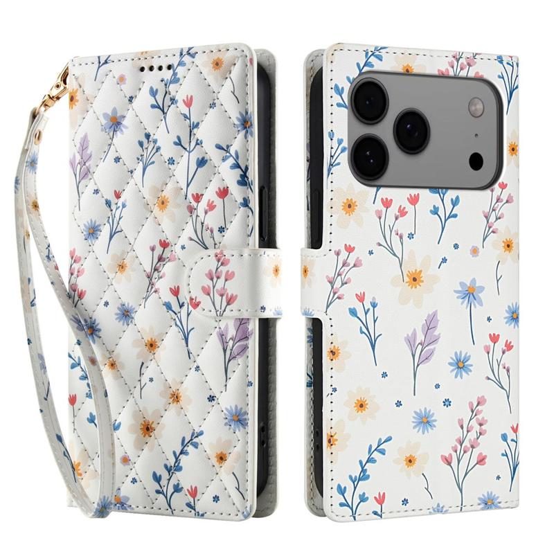 Rhombisk Blomsterpung til iPhone 17 Pro - med rem og kortholdere