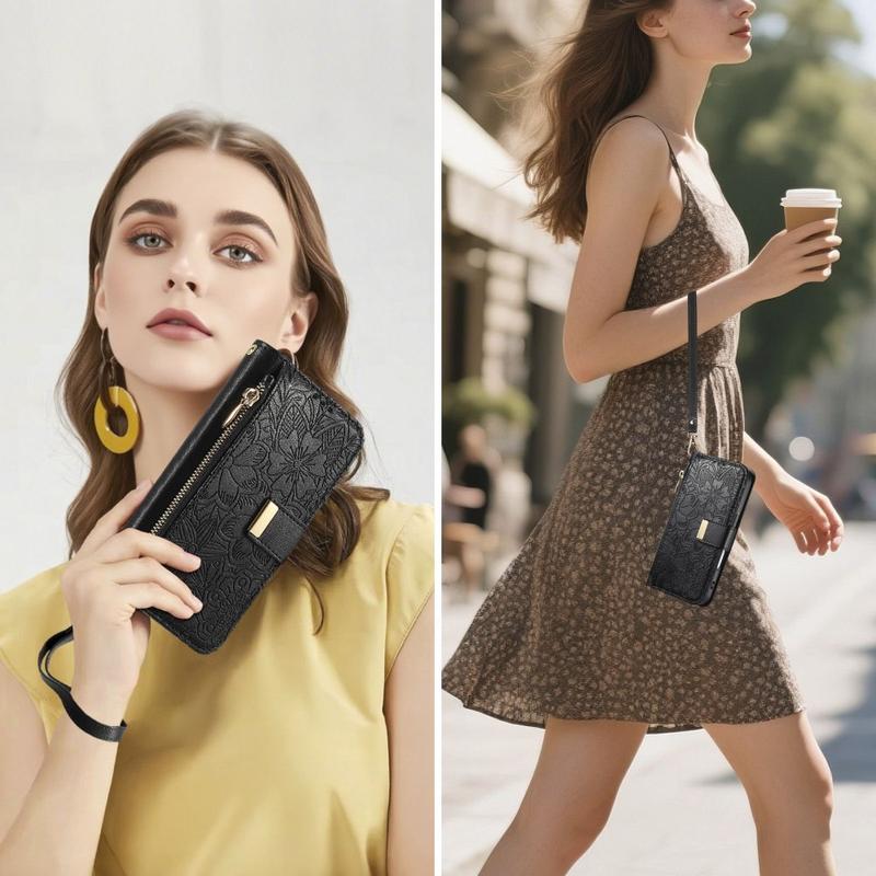 Pungetuier er blevet mere og mere populære som et miljøvenligt alternativ til at bære både en pung og et iPhone 17-etui. Blomsterprægningen forbedrer ikke kun udseendet, men styrker også polyuretanoverfladen, så den bliver mere holdbar mod ridser.