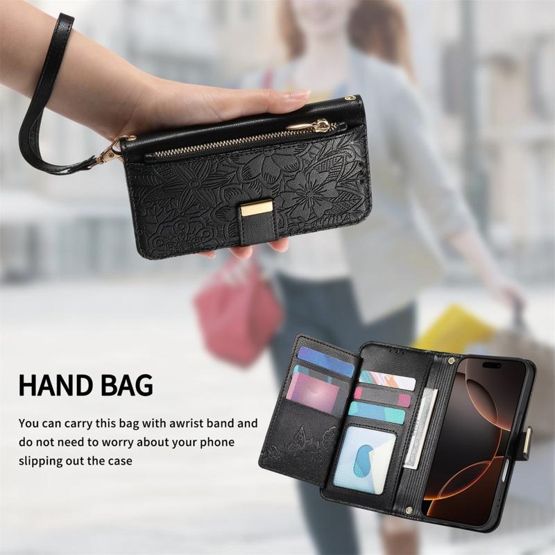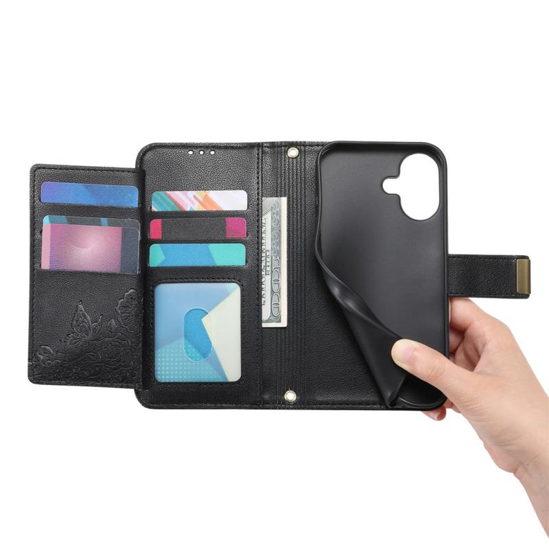 I modsætning til almindelige iPhone 17-etuier kombinerer dette alt-i-et-pungcover beskyttelse, organisering og elegance. Blomstertrykket giver det en stilfuld kant, mens lynlåslommen og håndledsremmen giver uovertruffen bekvemmelighed i hverdagen og på rejsen.