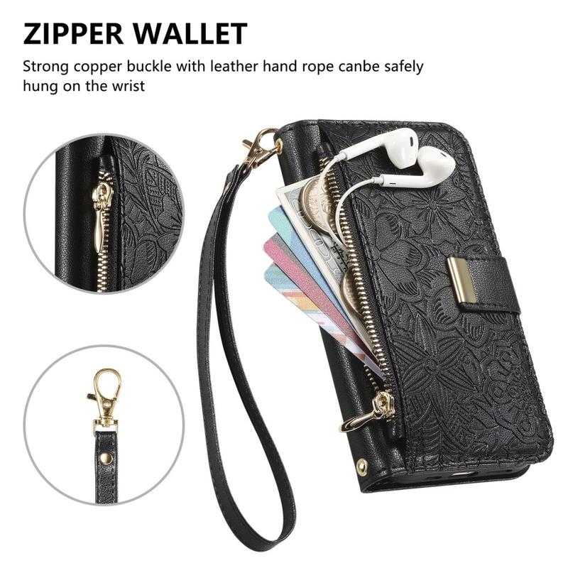 Hold styr på dine vigtigste ting, og tilføj elegance til din iPhone 17 med dette pungetui med blomstret bladmønster. Designet med flere kortpladser, en sikker lynlåslomme og en aftagelig håndledsrem er det den perfekte blanding af funktionalitet og stil. Det er fremstillet af holdbart TPU og polyuretan og giver pålidelig beskyttelse, samtidig med at det fungerer som en moderigtig alt-i-en-pung.