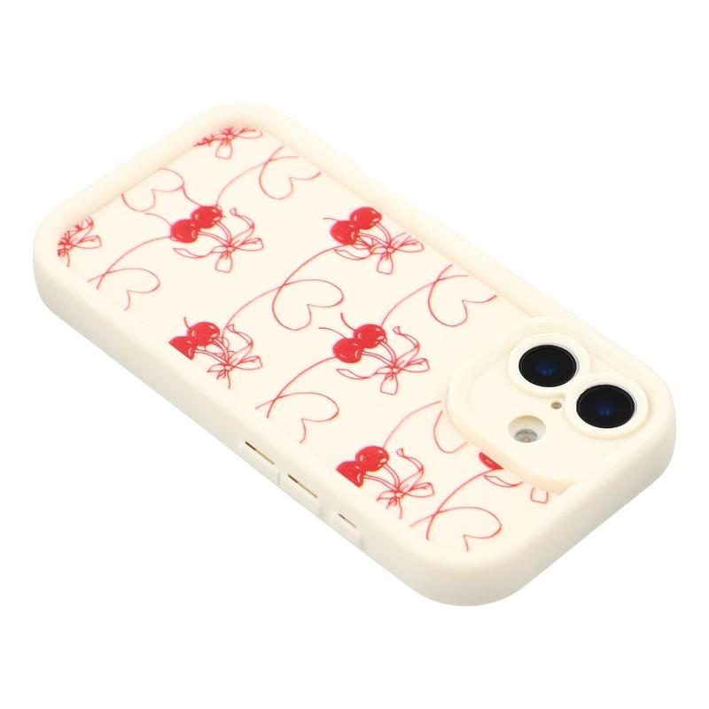iPhone 17 Stilfuldt stødsikkert TPU cover med forhøjede kanter - hvid / Sløjfebundne kirsebær