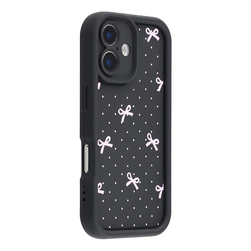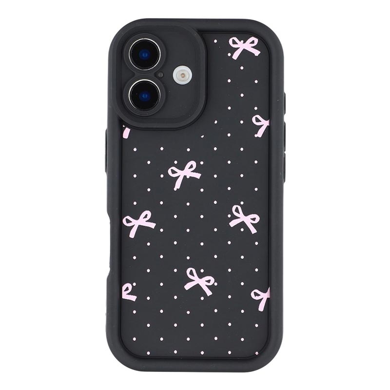 iPhone 17 Stilfuldt stødsikkert TPU cover med forhøjede kanter - Sort / Prikket sløjfe
