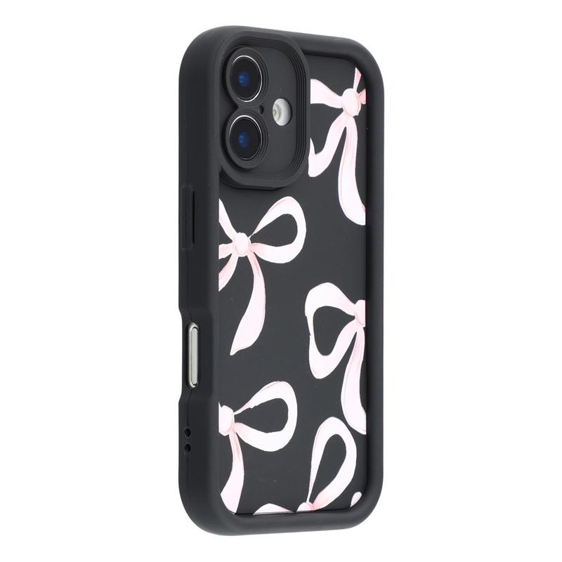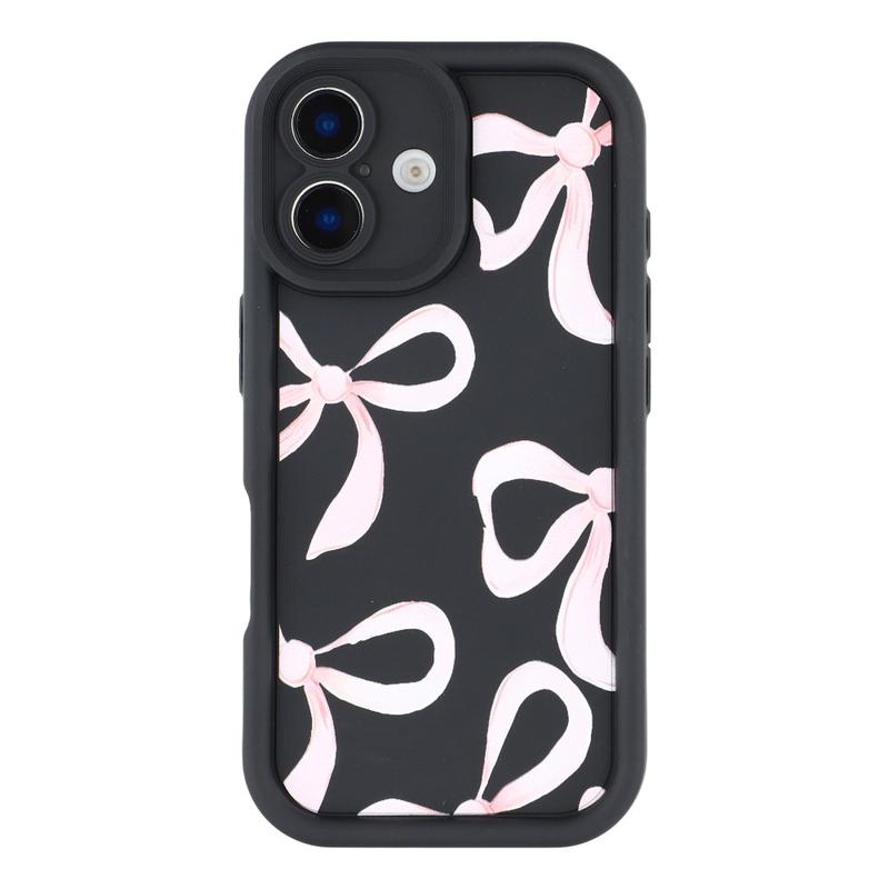 iPhone 17 Stilfuldt stødsikkert TPU cover med forhøjede kanter - sort / stor sløjfe