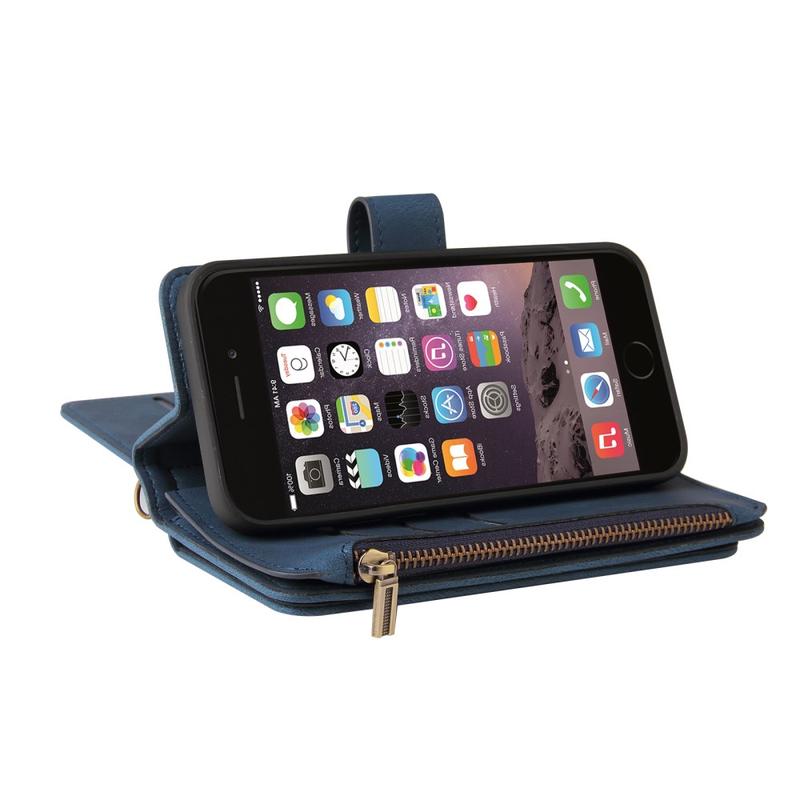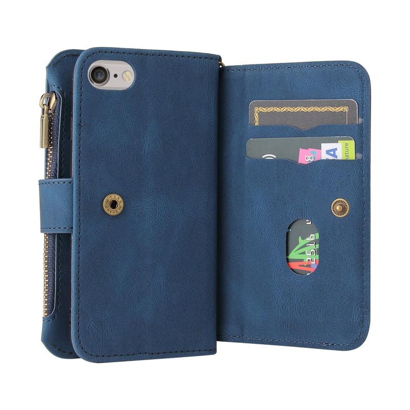 iPhone 6/7/8/SE (2020)/SE (2022) Flip Cover m. strop, pung og kortholdere - blå