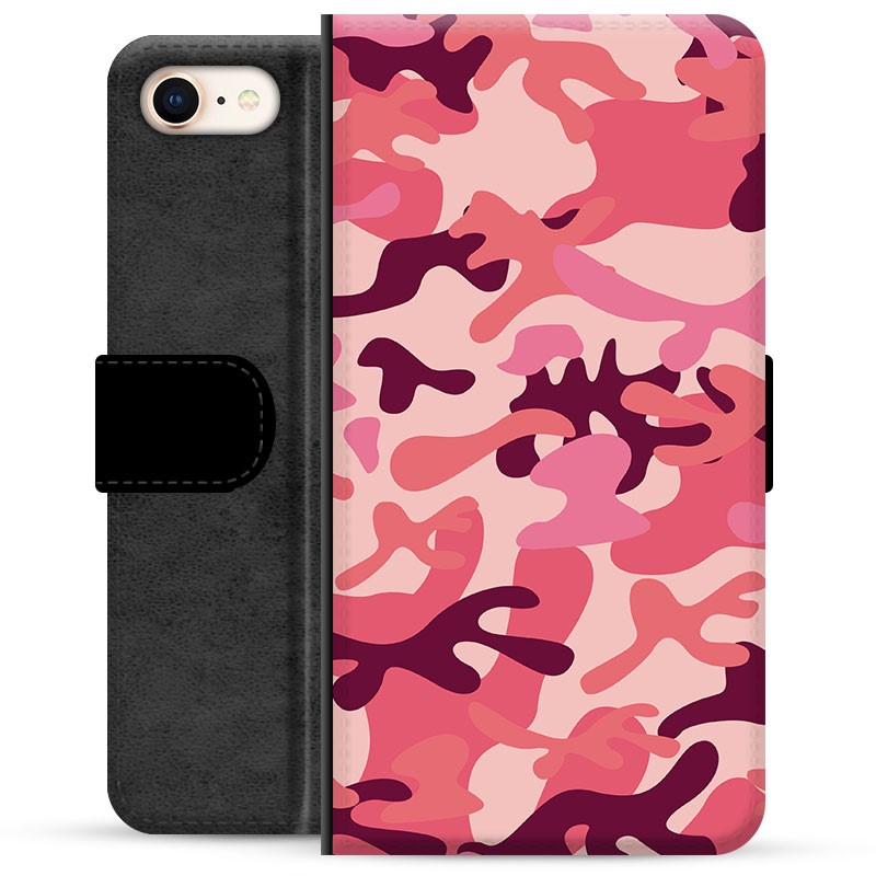 iPhone 7/8/SE (2020)/SE (2022) Premium Flip Cover med Pung - Pink Camouflage