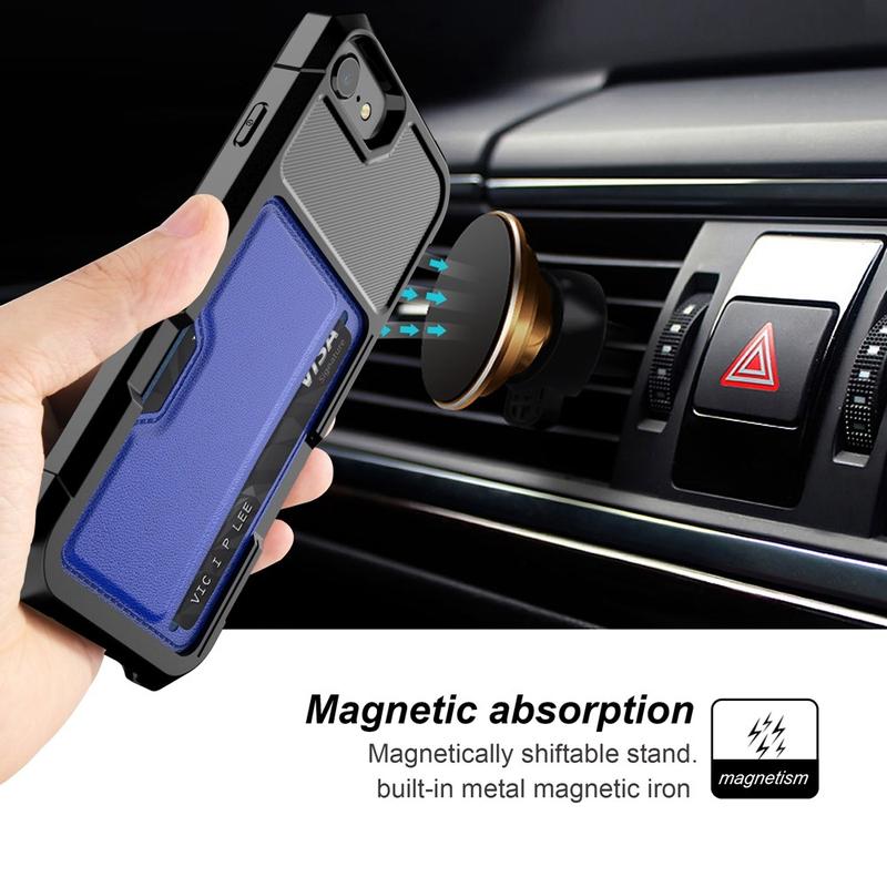 Placer dit kreditkort i holderens baglomme, og brug det som et stativ, takket være den smart designede slot. Du skal ikke bekymre dig om stød og ridser, fordi et TPU-cover med forstærkede kanter vil absorbere dem. En indbygget metalplade gør det muligt at bruge dette kortholder hybride cover med magnetiske holdere. Hævede kanter omkring kameraet og skærmen på din iPhone 7, iPhone 8, iPhone SE (2020), iPhone SE (2022) giver ekstra beskyttelse.