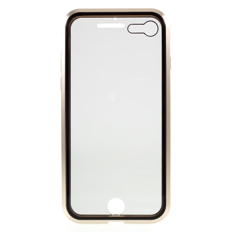 - iPhone 7, iPhone 8, iPhone SE (2020), iPhone SE (2022) cover med en metalramme og hærdet glas skærmbeskyttelse til for- og bagsiden