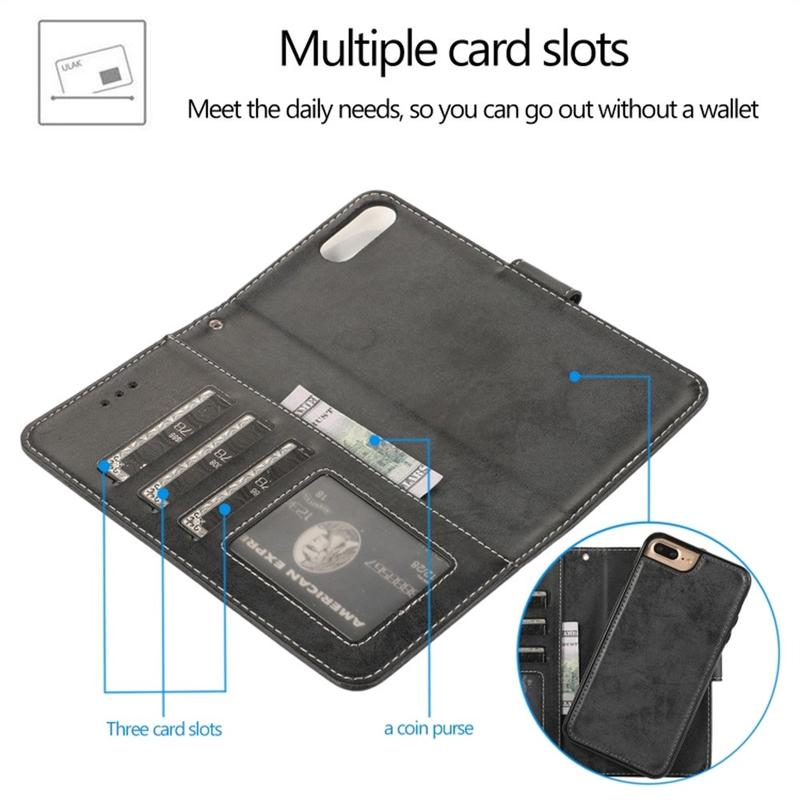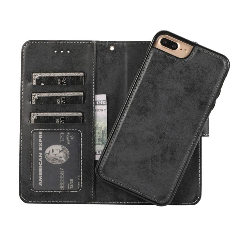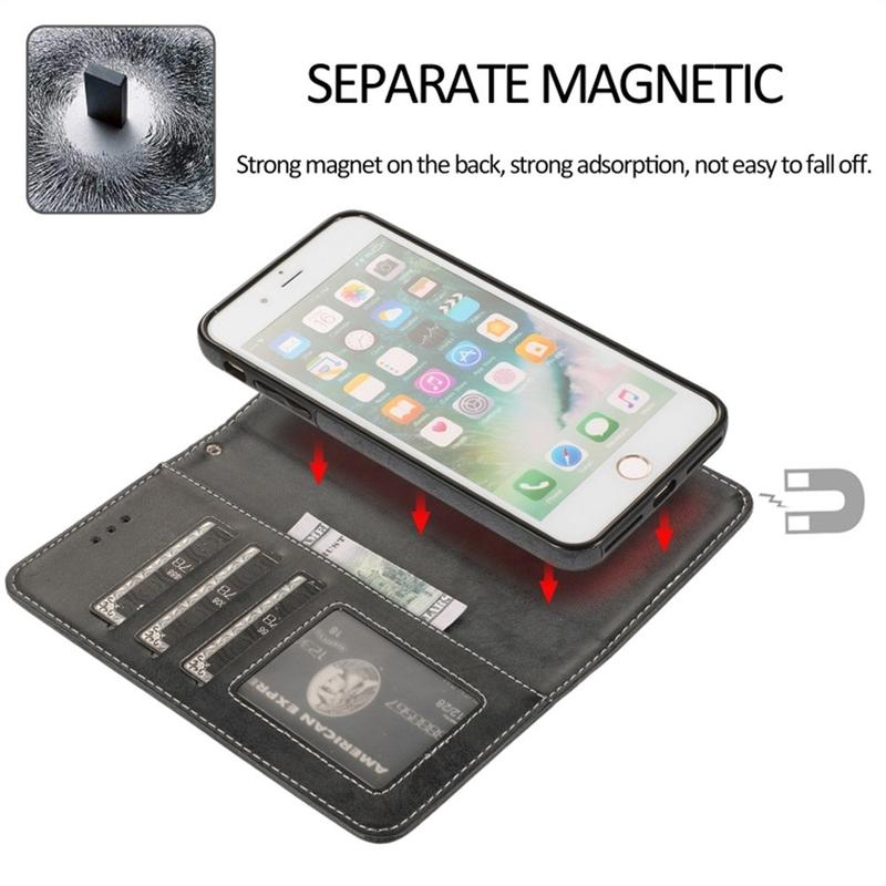 Vintage 2-i-1-tegnebogsetui med aftageligt magnetlåg til iPhone 7 Plus, iPhone 8 Plus