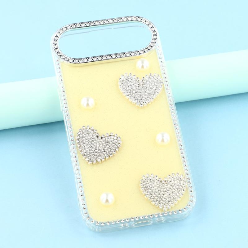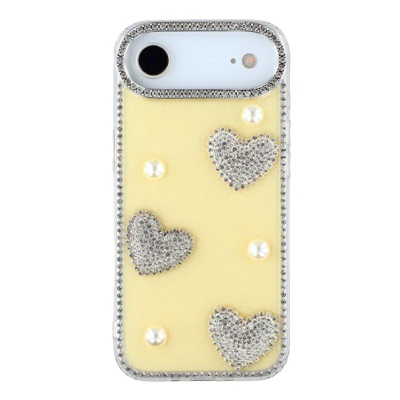 Dette iPhone Air-etui kombinerer pålidelig hverdagsbeskyttelse med glamourøs stil. Med glitrende rhinsten rundt om kanterne og funklende perlehjertedekorationer på bagsiden forvandler det din iPhone Air til et moderigtigt tilbehør, samtidig med at den er beskyttet mod ridser og stød.
