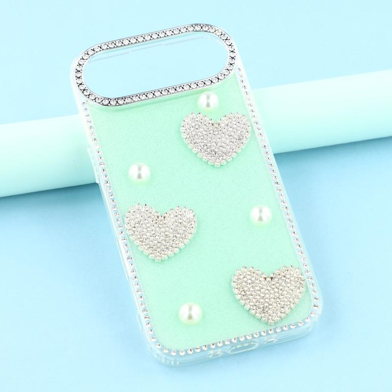 Dette iPhone Air-etui kombinerer pålidelig hverdagsbeskyttelse med glamourøs stil. Med glitrende rhinsten rundt om kanterne og funklende perlehjertedekorationer på bagsiden forvandler det din iPhone Air til et moderigtigt tilbehør, samtidig med at den er beskyttet mod ridser og stød.