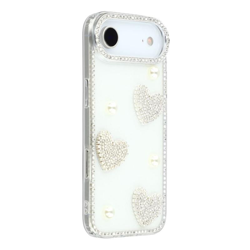 Dette iPhone Air-etui kombinerer pålidelig hverdagsbeskyttelse med glamourøs stil. Med glitrende rhinsten rundt om kanterne og funklende perlehjertedekorationer på bagsiden forvandler det din iPhone Air til et moderigtigt tilbehør, samtidig med at den er beskyttet mod ridser og stød.