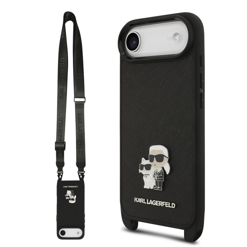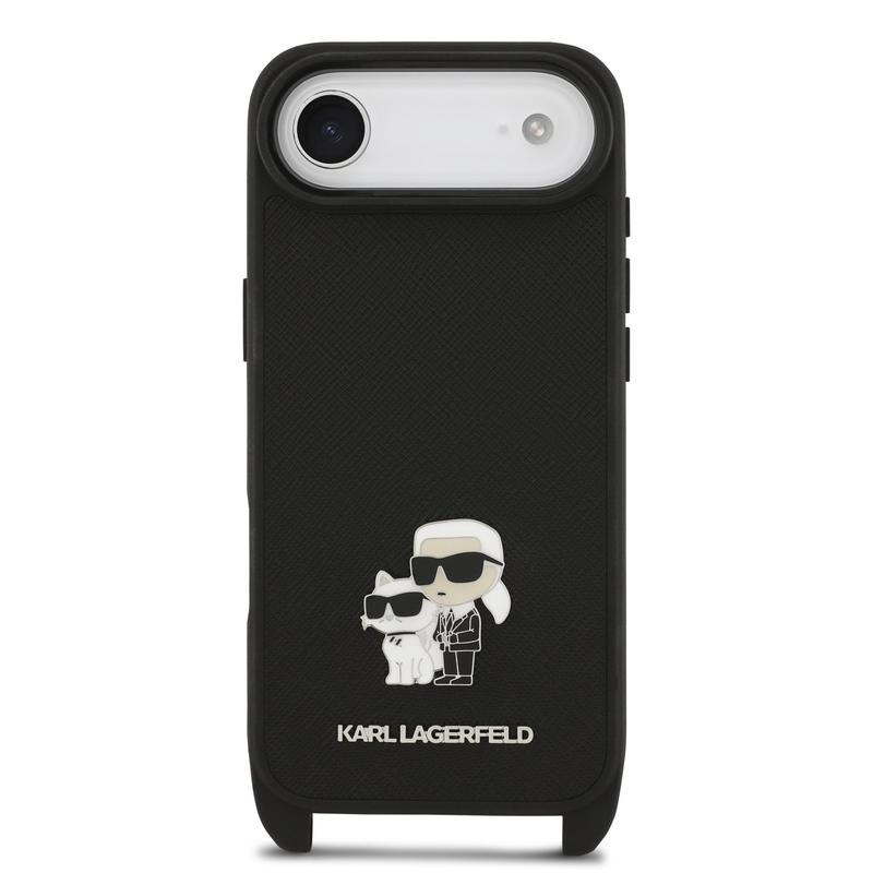 iPhone Air Karl Lagerfeld Saffiano Crossbody Metal Karl & Choupette Cover - Sort er ikke kun et beskyttende cover, men også et modeudtryk. Det kombinerer funktionalitet og stil på en måde, der gør det til et must-have tilbehør for enhver iPhone Air ejer. Med sin høje kvalitet og ikoniske design, vil dette cover beskytte din telefon og samtidig tilføje et strejf af luksus til din daglige rutine.