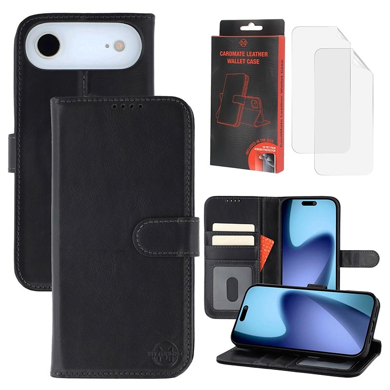 MyTPhone CardMate Premium læder pung taske til iPhone Air - stander funktion, kortholder, understøttelse af trådløs opladning, 2x skærmbeskyttelse