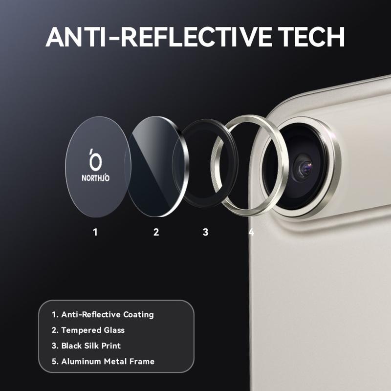 Opgrader din iPhone Air med Northjo-kameralinsebeskytteren. Med en aluminiumsring med CD-vener giver den din iPhone Air et elegant, moderne præg, samtidig med at den giver robust beskyttelse. Det 9H hærdede glas beskytter mod ridser, slag og støv og sikrer, at kameralinsen forbliver krystalklar. Med nem, værktøjsfri installation kan du forbedre din iPhone Air's holdbarhed og æstetik på få sekunder.
