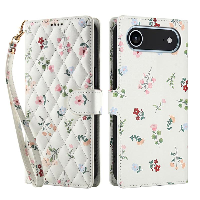 Rhombisk Blomsterpung til iPhone Air - med rem og kortholdere