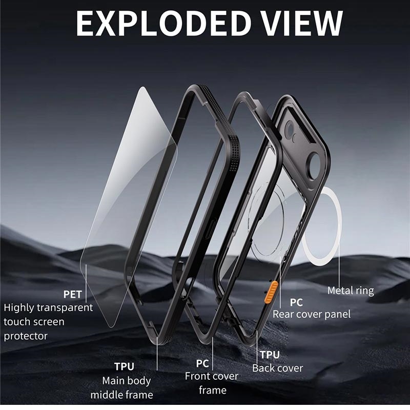 - MagSafe-kompatibilitet: Indbygget magnetisk ring understøtter trådløs MagSafe-opladning og tilbehør uden at fjerne etuiet.