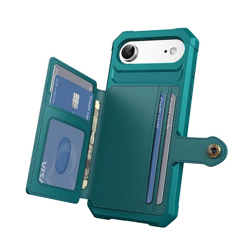 - iPhone Air cover med kortholder har en sikkerheds lukkeknap, pung-design og adskillige kortlommer med en speciel lomme til kontanter