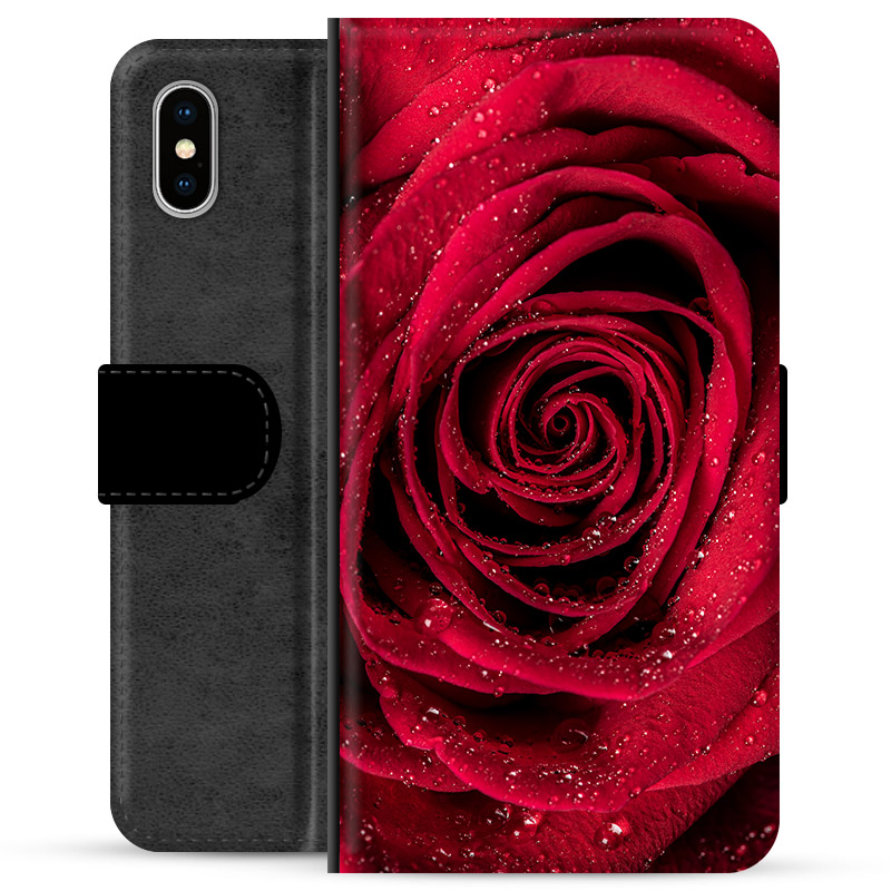 iPhone X / iPhone XS Premium Flip Cover med Pung - Rose