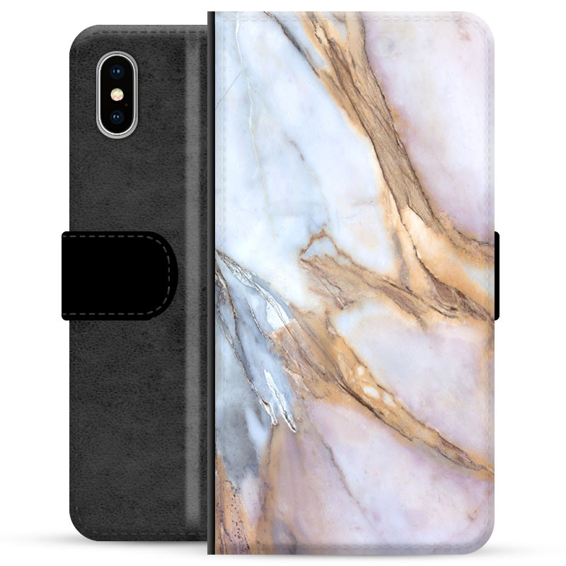 iPhone X / iPhone XS Premium Flip Cover med Pung - Elegant Marmor
