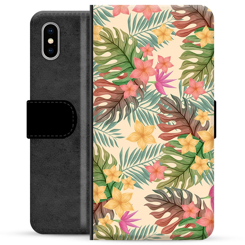 iPhone X / iPhone XS Premium Flip Cover med Pung - Vintage Blomster