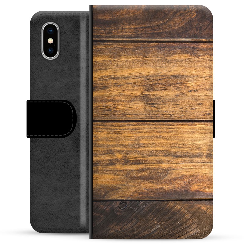 iPhone X / iPhone XS Premium Flip Cover med Pung - Træ
