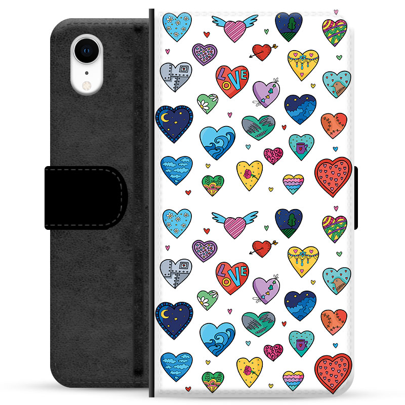 iPhone XR Premium Flip Cover med Pung - Hjerter