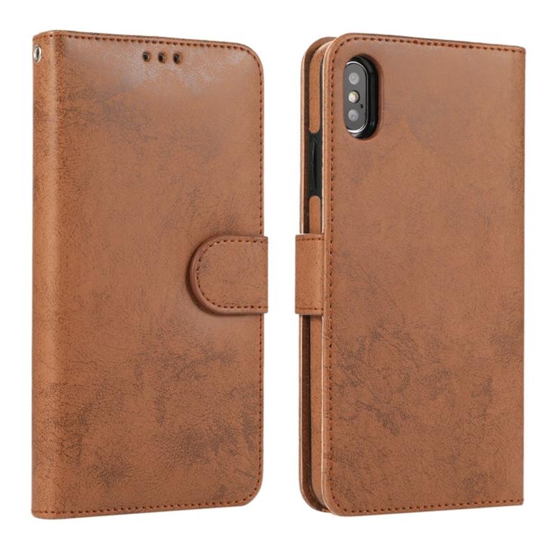 iPhone XS Max Vintage 2-i-1-pungetui med aftageligt låg - brun