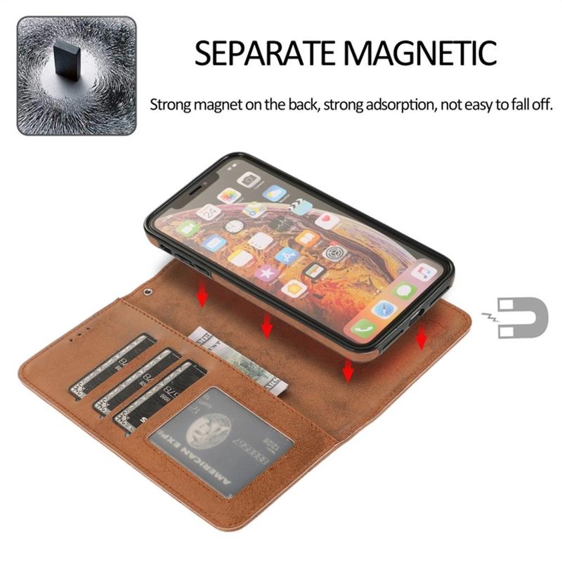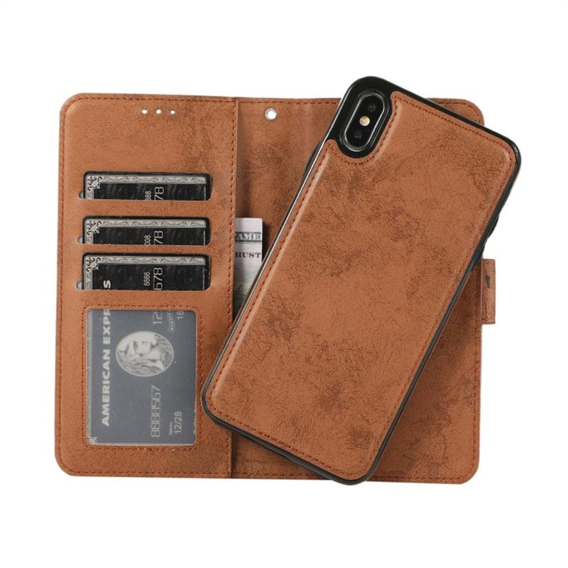 Vintage 2-i-1-tegnebogsetui med aftageligt magnetlåg til iPhone XS Max