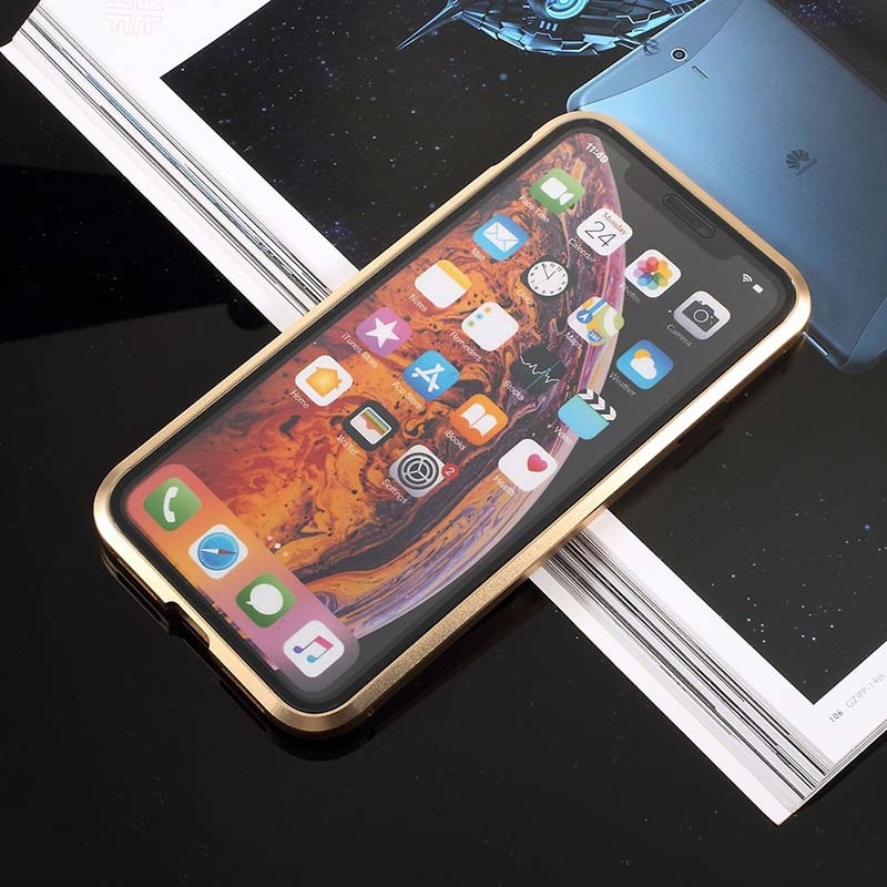 - iPhone XS, iPhone X cover med en metalramme og hærdet glas til for- og bagsiden