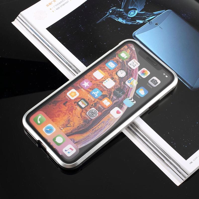 - iPhone XS, iPhone X cover med en metalramme og hærdet glas til for- og bagsiden