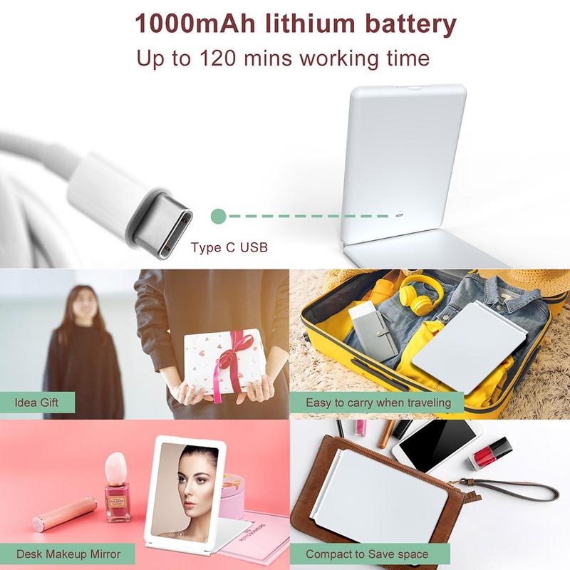 Opgrader din skønhedsrutine med J17 Folding Portable LED Makeup Mirror - den perfekte blanding af praktisk anvendelighed, elegance og innovation!