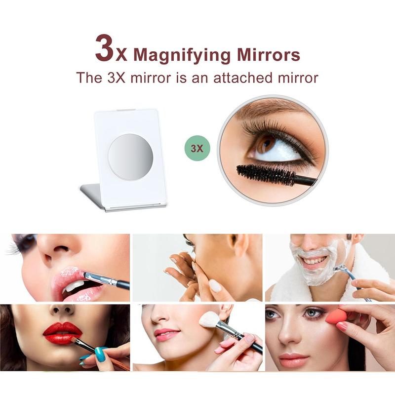 J17 Sammenklappeligt, bærbart LED-sminkespejl med 3X forstørrelse - perfekt til rejse og hjem