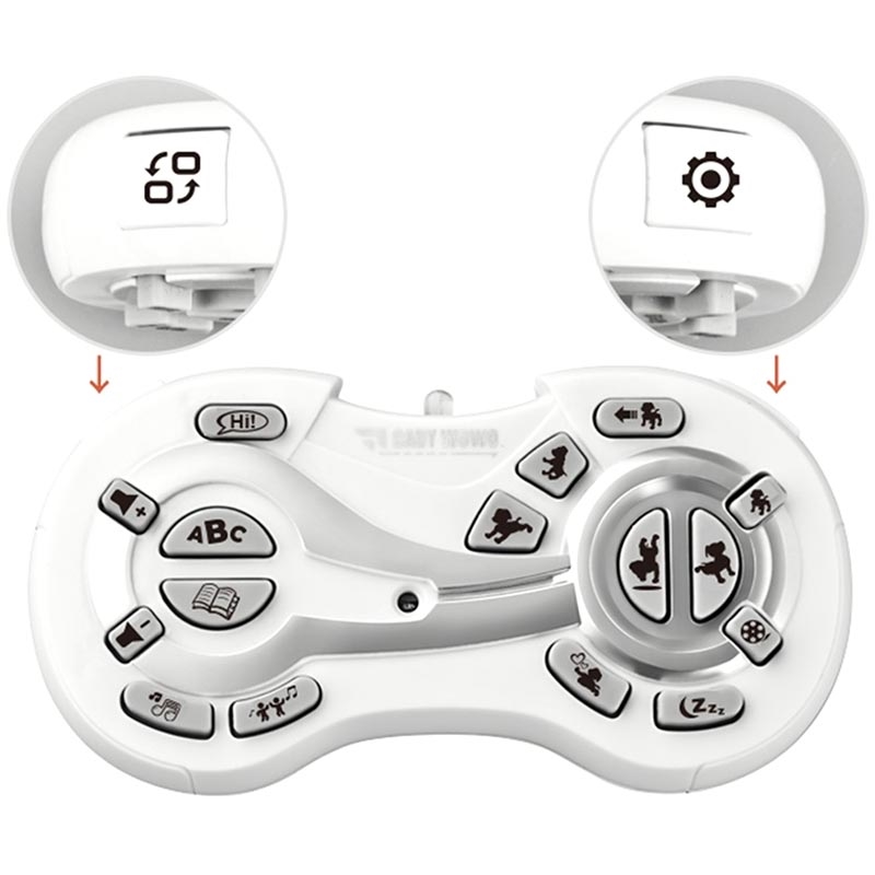 - Funktioner: frem, sidde, ned, håndstående, push-up, synge, dans, historie, hoved-touch, fodring, interaktion