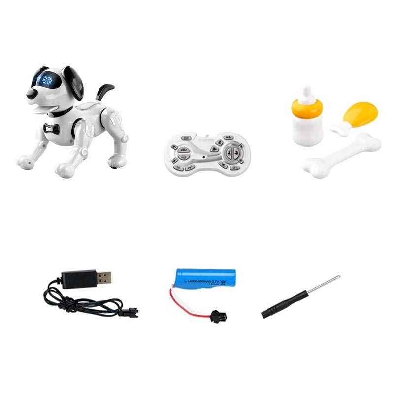 smarte robothund er et interaktivt elektrisk legetøj, der er perfekt til børn. Den har flere interessante funktioner og kan styres via infrarød teknologi. Med sine avancerede sensorer kan den simulere bevægelser og reagere på dine kommandoer, så den føles som et virkeligt kæledyr. Robothunden kan danse og spille musik, hvilket bidrager til dens sjove og underholdende natur. JJRC R19 smarte robothund er en fremragende gave til børn, der elsker at lege med legetøj og kæledyr, og den kan give timevis af underholdning og glæde.