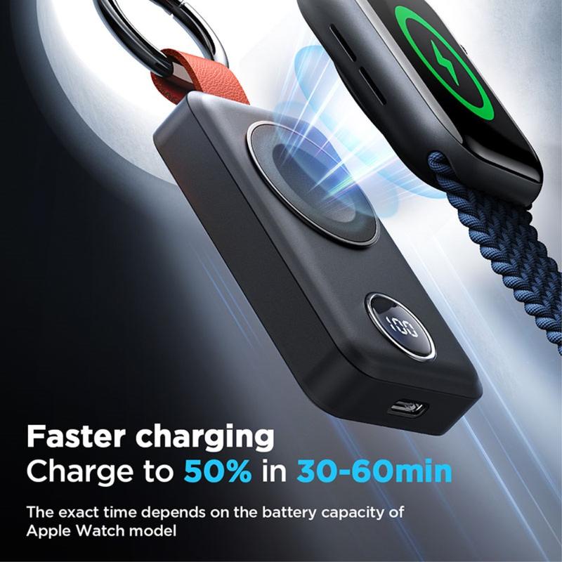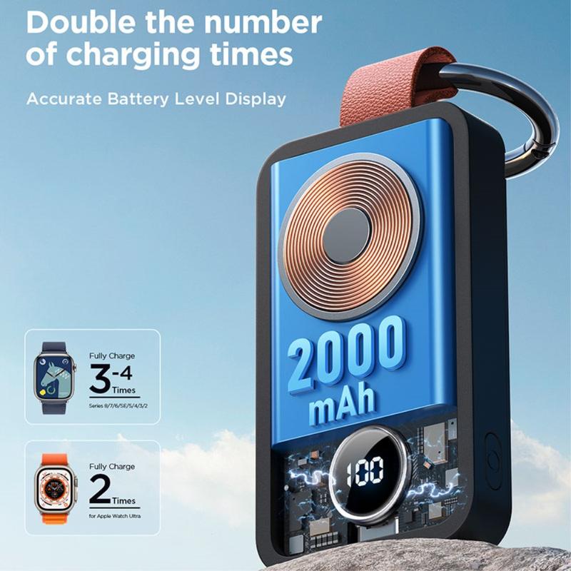 Hold dit Apple Watch opladet overalt med den bærbare trådløse ur-oplader Joyroom JR-WQW01. Denne kompakte 2000mAh powerbank er designet som en nøgleringsvenlig oplader med et tydeligt digitalt batteridisplay, så du altid ved, hvor meget strøm der er tilbage. Med automatisk registrering og plug-and-play-funktion starter opladningen hurtigt uden kompliceret opsætning, hvilket gør den perfekt til rejser, arbejdsdage og nødopladninger.