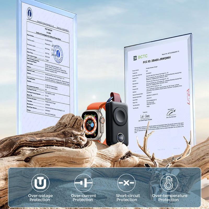 JR-WQW01 er en praktisk løsning, hvis du ønsker at kunne oplade dit Apple Watch uden at være afhængig af stikkontakter. Den kompakte nøgleringsform, det klare display og den automatiske opladning gør det nemt at bruge den overalt. Med indbygget sikkerhedsbeskyttelse er det en pålidelig backup til Apple Watch-brugere i hverdagen.