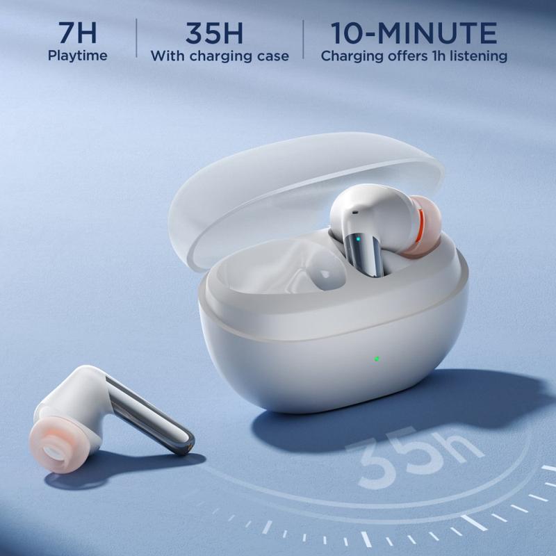 35 timers langt selskab, øjeblikkelig lynopladning: 7 timers afspilningstid, med 35 timers opladningsetui, opladning 10 minutter/musik 1 time