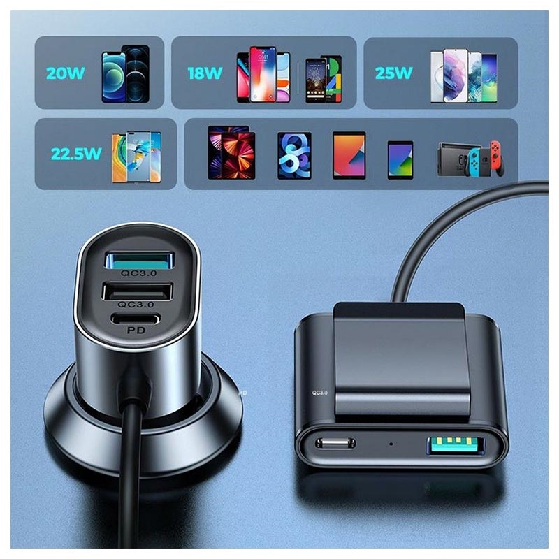 - Joyroom JR-CL05 hurtig billader med et forlængerkabel til passagerer på bagsædet
